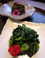 生の小松菜を主役にした「小松菜のバーニャカウダソース添え」は、よく冷えたシャキシャキとした小松菜を、生クリームと牛乳でマイルドに仕上げたオリジナルのバーニャカウダソースに付けて食します。西船橋の農家から直接仕入れ、新鮮だからこそ生まれた一品です。 「小松菜のナムル」「小松菜のキムチ」はゆがいた小松菜を秘伝のやまとのタレであえています。小松菜の苦味を生かした味です。
