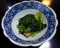 「小松菜と厚揚げのナムル」は、茹でた小松菜を、細かく刻んだ生の唐辛子とごま油、切りごまで和えた、風味と食感が豊かな料理。ナムルは本来韓国料理ですが、和食にあう一品となっています。「小松菜と手羽先の煮浸し」は、小松菜の緑色を消さないために、しょう油を使わずにさっぱり塩味で仕上げています。